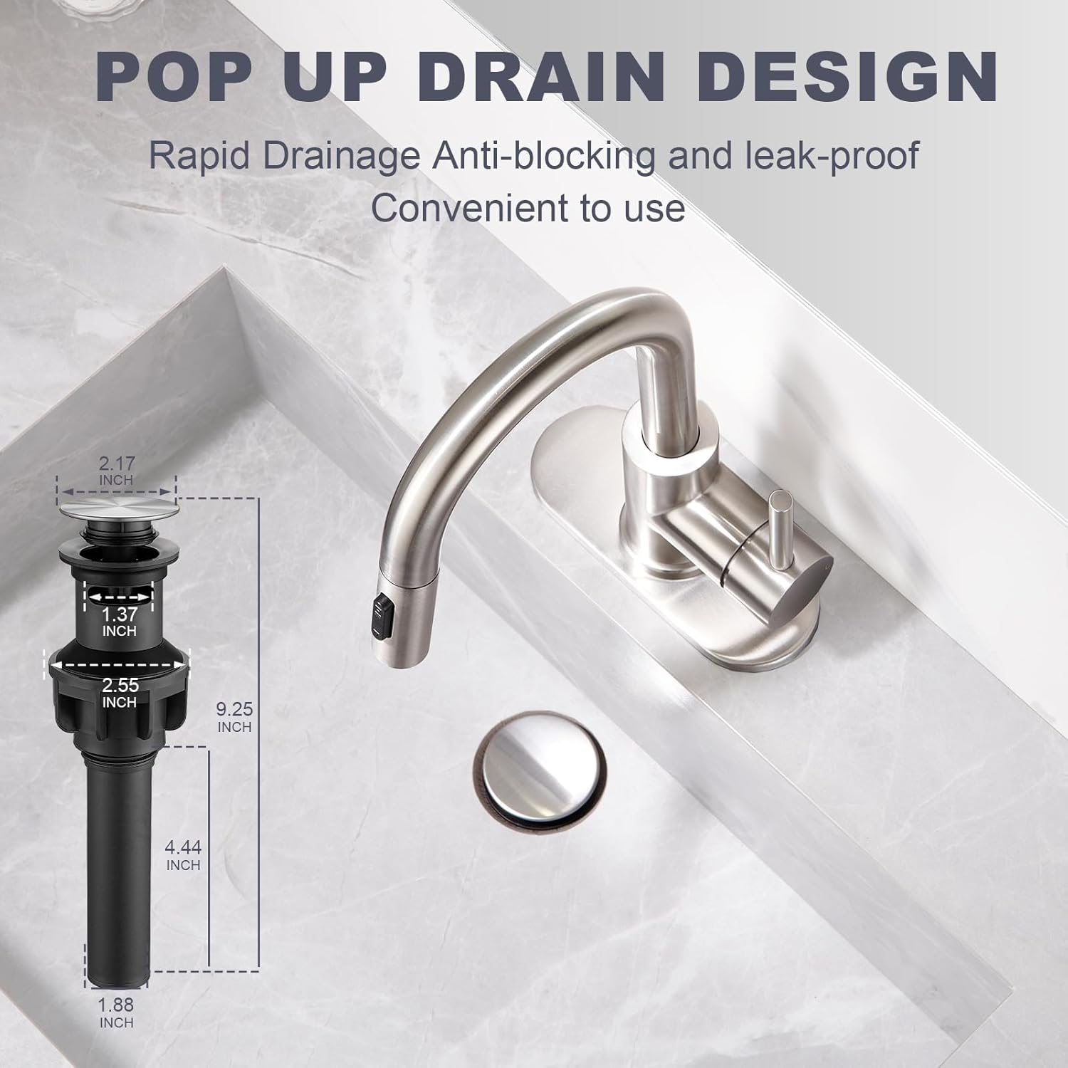 • 【With Pop-Up Drain】We gived the pop up drain with overflow can prevent debris cloged the drain, catch hair and trinket. It is used for a bathroom vanity, pedestal sink, powder room, laundry room, RV, travel trailer, farmhouse decor, apartment, rental home, or even outdoor space.
