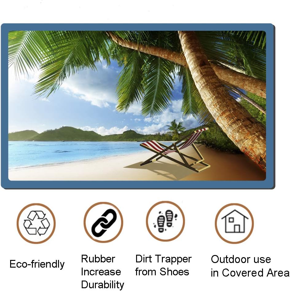 YK Decor Ocean Themed Front Door Mat Inside Entryway Mat Indoor Floor Mat for Home Entrance Shoes Mat Non Slip Entry Rug Welcome Door Rug Dirt Mud Trapper Mats❥This indoor door mat with Eco-friendly polyester surface and rubber backing material, nontoxic, perfect for homes with children and pets (dogs or cats).❥Decorative front door mat for home, features beach scenery print on it, adding a welcoming touch of the season to your home, a beautiful way to add color to any deck, porch or entryway. ❥Low-profile entrance door mat reduce chances of tripping, allow your door to easily pass over the mat without getting stuck.❥The entry mats for home is made to take dirt, dust, mudand from shoes to keep home floors to stay clean and dry!❥Rubber backing will stop the mat slipping or racking when used and keep you safe by preventing slid and movement.❥Easy to care. Shake briskly or rinse it with garden hose.❥Great for entrances, doorways, kitchens, conservatories, laundry room, mudroom, front or back door, pet doors, garage and even caravans.❥Compact size - Perfect for small doorways.Specifications:Dimensions:approx. 29" x 17"Material: Polyester surface + Rubber BackingPackage included:1 x Decorative Entrance Doormat