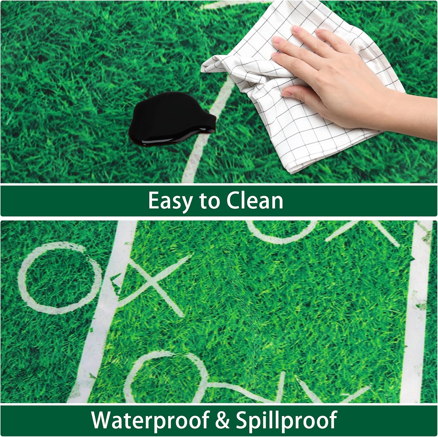 Our football round fitted tablecloths with elastic are made of high quality polyester material, which is stretchy, wrinkle-resistant, durable and reusable. Fitted table cover ensures that it drapes well and is securely attached to the table, won't move or fall off, and the installation is very easy, which brings a lot of convenience to your life. Suitable for round table dinning table tops, please take a few seconds to measure your table size before purchasing. Perfect Gift: you can use it to decorate your dining table or give it as a housewarming gift to your friends and relatives.