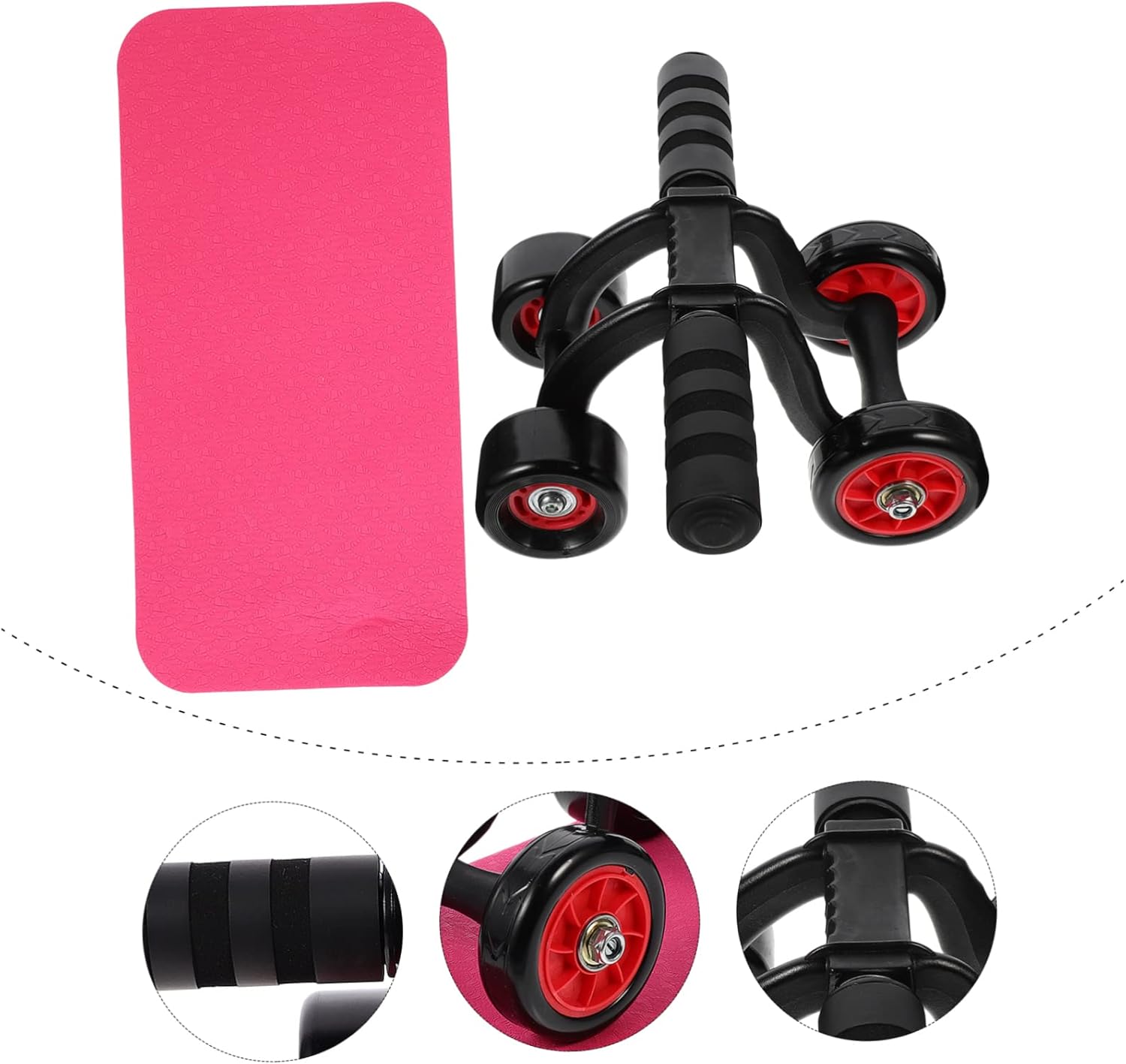 Package List 1 x Set of Fitness Wheel Characteristics - Material: Plastic, Iron, Foams Creative Roller - Size: About 29.50X22.50X13.00cm/11.59X8.84X5.11inch Exercise Equipment - Color: As shown Abdominal Trainer Wheel - to stabilize the brake, stable support of triangular structure Portable Exercise Equipment. - Widen the tire to , prevent skid and avoid floor damage Fitness Wheel. - Four-wheel more stable and safe for use Abdominal Exercise Trainer. - The groove handle is designed to prevent skid and sweat. You can use it with confidence Four-wheel Trainer. - Thickened plastic, iron and foams tracks are non-skid and wear resistant Wheel Roller.Goods DescriptionFour-wheel Trainer Are you looking for a professional, yet muscle exercise equipment wheel? Are you in search of a sturdy, trustworthy tool that can do multiple jobs at once? , ! Our professional ab roller must meet your need.Fitness Wheel It is for you