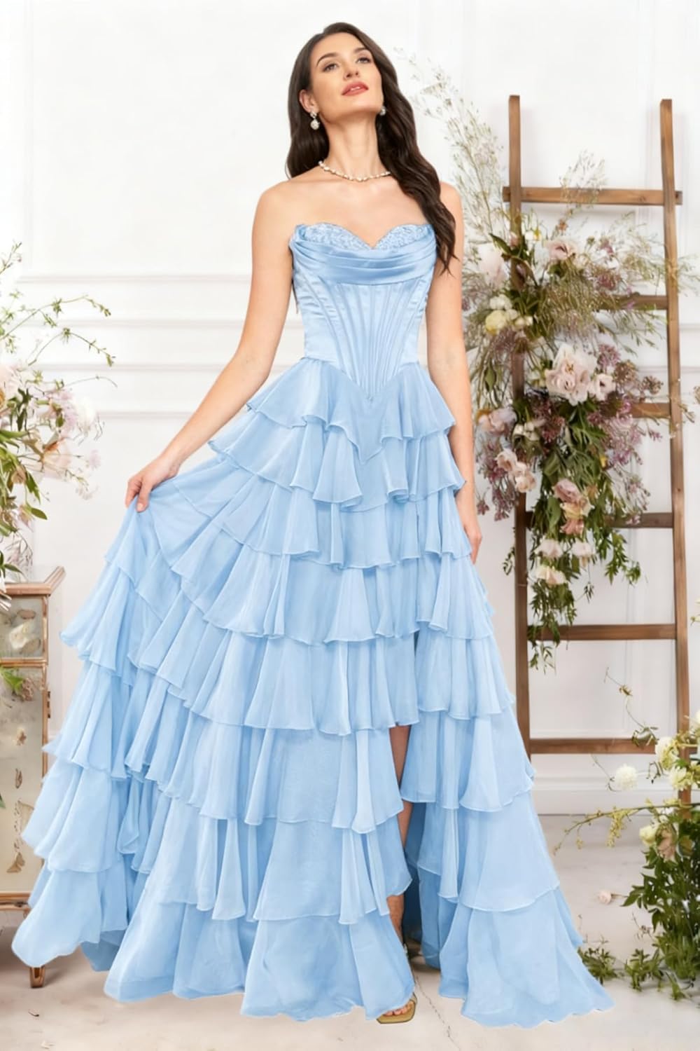 | Embellishment Feature | Strapless Prom Dress Ruffle Layered |