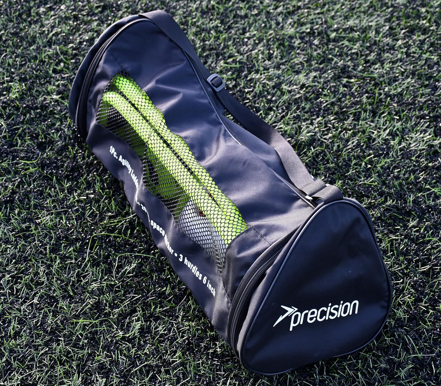 Take your training to the next level with the Precision Coach Training Set, a complete agility and speed training kit designed for football, rugby, and multi-sport fitness drills. This versatile training bundle is used by coaches, athletes, and fitness enthusiasts to develop explosive speed, agility, and coordination across all skill levels. Whether for professional coaching sessions, team training, or personal fitness, this kit delivers everything needed for intense and effective workouts. Everything You Need in One Set: 4 Metre Agility Ladder – Develops fast footwork, acceleration, and reaction times. 3 Mini Hurdles – Ideal for jump drills, plyometrics, and speed training. 20 Space Markers (Coloured Cones) – Customisable for agility and positioning drills. Lightweight Carry Bag – Makes transport and storage simple and convenient. Perfect for Football, Rugby & General Fitness Training. This training set enhances performance across multiple sports by improving coordination, quick direction changes, balance, and reaction speed. It is ideal for footballers working on dribbling speed, rugby players training for agility, and general fitness workouts for improved endurance and movement efficiency. Durable, High-Quality Training Equipment. Built from durable, long-lasting materials, the Precision Coach Training Set is designed to withstand intense training sessions on all surfaces, including grass, artificial turf, and indoor gym floors. Train Anytime, Anywhere. Whether you’re training on the pitch, in the park, or at home, this lightweight and portable set makes it easy to set up drills and improve athletic performance wherever you go.