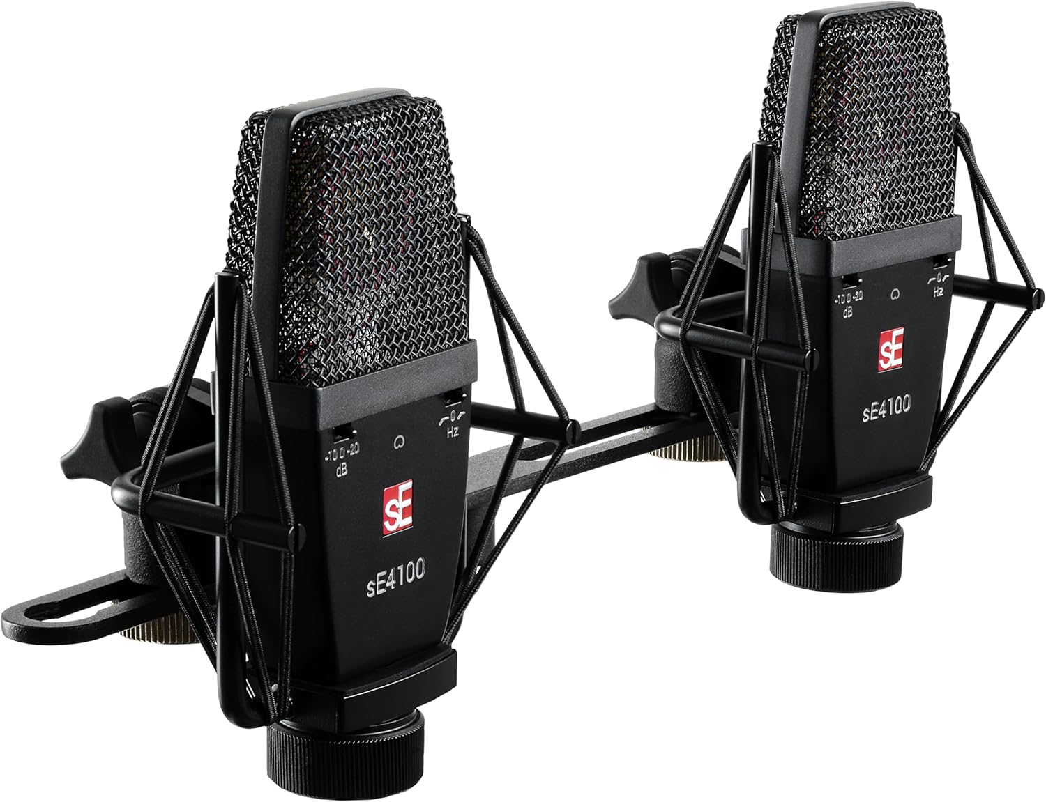 Classic sound meets modern craftsmanship in its simplest form; we proudly introduce the little brother to the renowned sE4400 – meet the sE4100 large-diaphragm cardioid true-condenser microphone! With cardioid being the most common polar pattern utilized in both live and studio applications, the sE4100 prioritizes the features you really need, putting the smooth sound character of classic condensers in the palm of your hand.Featuring the very same handcrafted twin 1“ gold-sputtered brass capsule as the sE4400 – the sE4100 is a true workhorse that delivers incredible results on a wide array of sources. From vocals to grand pianos and acoustic or brass instruments to electric guitar cabs and drum overheads – the sE4100 is outstanding in live environments as a factory matched-pair for overheads or instrument spot mic applications.Handcrafted with the highest attention to detail, the sE4100 is built with a dent-proof die-cast all-metal housing, metal switches, a rugged spring steel wire mesh grille, and a premium finish. The sE4100 is roadworthy, ready to handle the day-to-day life of touring professionals and years of demanding studio use. With integrated attenuation pads and low-cut filters, the sE4100 compensates for loud sources, easily taming excessive low-frequency rumble or proximity effect, providing the necessary extended dynamic range and roll-offs needed to dial in your sound at its source.Classic sound meets modern craftsmanship in its simplest form; the sE4100 is a cardioid version of the renowned sE4400. With cardioid being the most common polar pattern utilized in both live and studio applications, the sE4100 prioritizes the features you really need, putting the smooth sound character of classic condensers in the palm of your hand. • Pure and simple - features the very same handcrafted capsule as used on the sE4400. • No frills - just the features you really need. Cardioid only. no LEDs. no plastic switches. • Just great sound - The one mic that does it all. • Minimizes signal bleed from unwanted sources • Ensures high gain-before-feedback in the entire frequency range • Provides directivity from the source by preventing coloration from indirect reflections and reverb • Gold-sputtered diaphragms ensure maximum reliability • Every capsule is handcrafted and individually tuned in our very own factory • True-condenser technology and ultra-precision parts for the best possible sound quality • Provides an extended dynamic range • Enables a wide range of applications • Ideal for close-miking of loud sources such as electric guitars, brass instruments and kick drums • Eliminates low-frequency rumble or footfall noise • Compensates for excessive bass with close-mic techniques • Roadworthy die-cast housing and solid spring-steel grille for maximum robustness • Efficient rejection of any electrical interference and noise • Premium finish ensures a great look for many years • Rigorously tested, tuned in-house and sonically matched for a virtually identical frequency response • Provides balanced, consistent stereo sound and imaging • Complete with the essentials needed for instant stereo applications