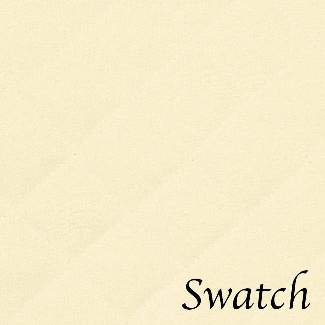 Sold as a Set of Four. Ivory Quilted Traditional Rectangular-shaped Placemat made from Stain Resistant Polyester with a Faint Leaf Jacquard Pattern Woven into the fabric. Bias edge. All Table Linen products are manufactured exclusively by Sweet Pea Linens in America.